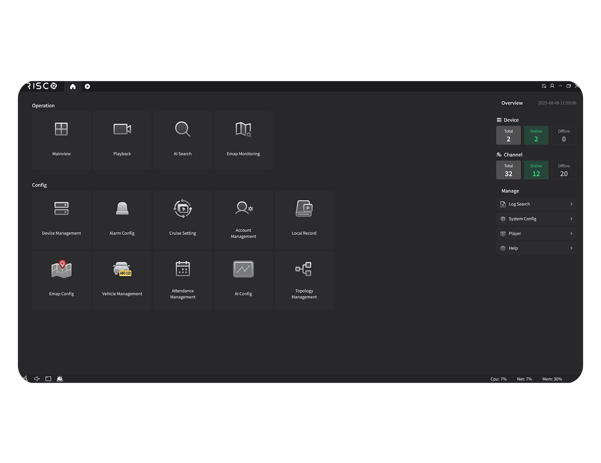The upcoming RISCO VMS desktop application brings together live view, playback, configuration, and analytics in one powerful platform. Designed for large-scale deployments and advanced monitoring scenarios, it delivers: