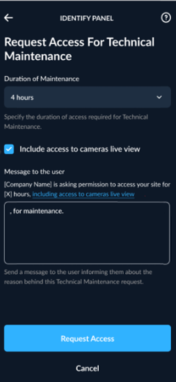 L’installateur peut demander un accès à la maintenance technique à l’Utilisateur Maître (ou à l’un des utilisateurs finaux du site qui ont été approuvés par l’Utilisateur Maître pour répondre aux demandes de maintenance) .