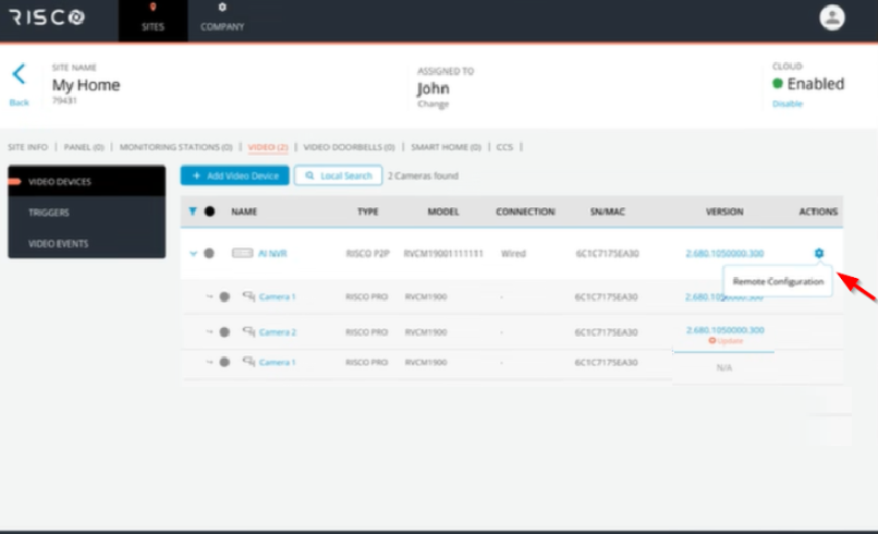 Atualização da RISCO Cloud V6.7.1